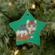cute kitten tabby cat eating pudding at christmas ceramic ornament