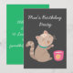 Cute modern kitty design of cat in teacup for a young girl's tea party birthday party. This design is whimsical, cute and can be fully customised to include your own personal details on the back.