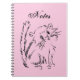 A fun colourful back to school spiral notebook featuring an original line drawing cartoon of an adorable kitty! Pink background.