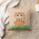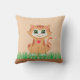 Cute ginger tabby kitty cat and grass plant on light orange beige Throw Pillow.