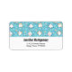 Address labels with a cute cat pattern, set on a blue background and decorated with rainbows and paw prints and more.
