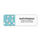 Étiquettes de adresse avec un mignon motif de chat, mis sur un arrière - plan bleu et décoré avec des arcs-en-ciel et empreintes de pattes et plus.