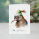 Cute Kiwi Bird in Christmas Elf Hat, custom Foil Holiday Card