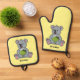 Cute koala and coconut cartoon illustration oven mitt & pot holder set
