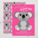 Cute Koala Bear Kids 1st Birthday Party Pink Invitation