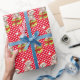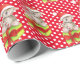 Cute koala bear art wrapping paper featuring a repeat design pattern on a red and whit polka dot background. Koala bear on gift art holding a candy cane seasonal festive wrapping paper. Ideal for your Christmas gifts to koala bear or animal lovers. Cute bear painted in watercolor and designed by Sarah Trett.