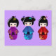 Cute kokeshi dolls cartoon postcard