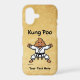 A humorous black-belt karate master, with a poo emoji as head, in a fighting stance. Text reading, "Kung Poo" appears above the image. Everything is superimposed on an old paper background image. Customise by adding your own additional text.