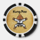 A humourous black-belt karate master, with a poo emoji as head, in a fighting stance. Text reading, "Kung Poo" appears above the image. Everything is superimposed on an old paper background image. Customise by adding the chip value, or other additional text, on the reverse side.