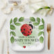 These ladybug themed paper plates have been designed to match our watercolor ladybug collection! All of the text on these can be personalized to accommodate your event. This theme is perfect for any ladybug themed event with soft tones of red and green. This design features a red watercolor ladybug with leafy accents and a watercolor background.