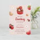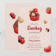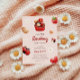 Baby shower invitation featuring cute lovebug, cupcake, flower and strawberry illustrations all in a red, white and light brown colour scheme. Paired with the illustrations are a playful script font and an elegant sans serif in which all you personalized information is written. Check out our store for more items from this collection.