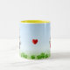 Cute Ladybug, Four-leaf Clovers on Light Blue Two-Tone Coffee Mug