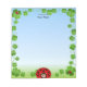 Cute happy ladybug surrounded by good luck four leaf clovers Notepad. Ideal for everyone. Lady bug is a universal symbol of good fortune! Great for kids and adults!
