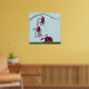 In this painting, this cute ladybug is being held onto by another as he presents a flower to his sweetheart. The one ladybug that is holding onto him is clinging to a blade of grass. Blue skies all around and green grass. Based on an original art piece by © One Artsy Momma.