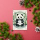 Cute Large Chubby panda sitting in a lotus pose Foil Greeting Card