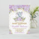 Cute Lavender Gold Floral Elephant Baby Shower Invitation