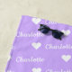 Lilac/Lavender Personalized Name and Heart Cute in a Repeating Pattern Beach Towel or Large Bath Towel. Perfect as a gift for children or friends or for yourself which you can bring to your summer vacation or trip.