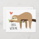 Cute, funny card with cartoon sloth bear, expressing love. "Chill with Me" quote can be modified, personalized according to liking. Appropriate for Valentines Day, or just to show affection without occasion.