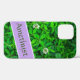 Enjoy your leafy adventures with this phone case! This design features a Botanical Leaf pattern, with two flowers in it. On the bottom, a slanted light purple stripe is presented with a personalized text to show your name! Enjoy your leafy adventures with this phone case!
