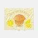 A fleece blanket with smiling, lemon, poppy seed muffin character with lemon slices to the its sides. The design includes the words "Lemon Poppy Seed Muffin" and the words can be customized.