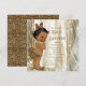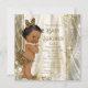 Leopard baby shower invitation with adorable ethnic baby girl wearing leopard print outfit with a string of pearls on a beautiful gold background. This elegant leopard baby shower invitation is easily customized for your event by adding your details in the font style and colour and wording of your choice. You can also remove the leopard print from the back and add colour.