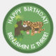 This happy leopard is sleeping in a tree. Drawn in cute cartoon illustration style for spotty safari fun!