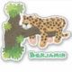 This happy black jaguar is sleeping up in a tree. Drawn in cute cartoon illustration style.