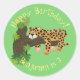 Cute leopard sleeping in tree cartoon illustration classic round sticker