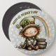 Cute Leprechaun With Pot of Gold and Rainbow 6 Inch Round Button