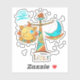 Cute Libra sign with a scale weighting the sune and the moon. Bright retro colours and style.