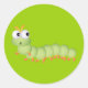 CUTE LIGHT GREEN WORM FUNNY CARTOON SURPRISED CLASSIC ROUND STICKER