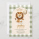 Boho Cute Lion Birthday Safari Animals Party Balloon Green Gingham Invitation