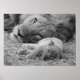 Cute Lion Cub Resting With Father Poster