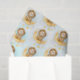 Tissue paper with a cute watercolor illustration. An adorable lion wearing a crown fishing for stars sitting on a crescent moon resting on a fluffy cloud. Magical fantasy illustration. Light blue watercolor background.