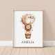 Cute Lion Hot Air Balloon Boho Baby Nursery Wall Poster