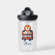This adorable personalized water bottle features a playful, whimsical lion perched atop a classic red, double-deck London bus. Personalize it with their name for a unique and functional gift encouraging healthy habits.