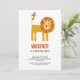 Belle et fantaisiste lion première invitation de fête d'anniversaire. Le dos comporte un motif de coordination. Customisez le texte pour convenir à votre célébration. Art original de Nic Squirrell