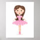 Cute poster featuring a cartoon image of a little ballerina in pink tutu on a white background. Sweet design for everyone who loves ballet and dancing. Great for decorating your little girls room.
