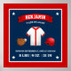 Baby room birth announcement Poster featuring cute little baseball jersey and matching sports elements with modern typography. Add all your lovely details on this easy-to-use template to make your own unique birth stats Poster.