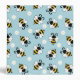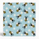 Seamless pattern with cute little flying bees and white daisy flowers decoration on light blue background