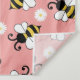 Seamless pattern with cute little flying bees and white daisy flowers decoration on pink background.