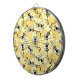 Seamless pattern with cute little flying bees and honeycomb decoration on pastel yellow background