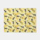 Seamless pattern with cute little flying bees and honeycomb decoration on pastel yellow background