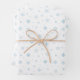 These wrapping paper sheets feature little blue snowflakes on a white background.