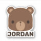 This design features cute little brown bear with personalized name in brown modern sans serif font style.