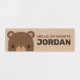 This design features cute little brown bear with personalized name in brown modern sans serif font style on light brown background.