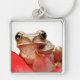 Cute Little Brown Marbled Reed Frog Red Flower Keychain