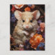 Cute Little Brown Mouse Colourful Flowers Postcard