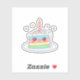 Centred print design featuring a kawaii flat illustration of a small rainbow cake slice on a plate. The cake has a smiling face with big eyes and rosy cheeks, topped with colourful sprinkles and a tiny candle.