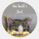 Cute Little Cat Book Plate to Customize Classic Round Sticker